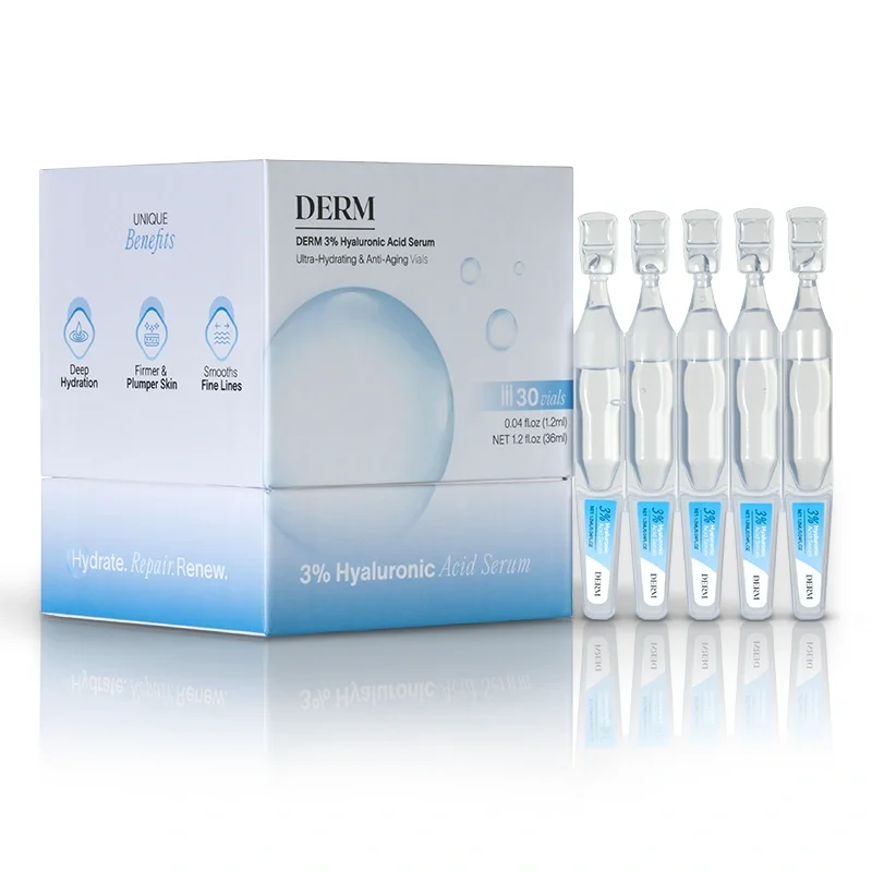 But here's the real game-changer: unlike regular hyaluronic acids that become oxidized and lose their effectiveness as soon as you open the bottle, Derm™ comes in sterile, single-use vials that keep the formula fresh and potent for a full 24 hours after opening.