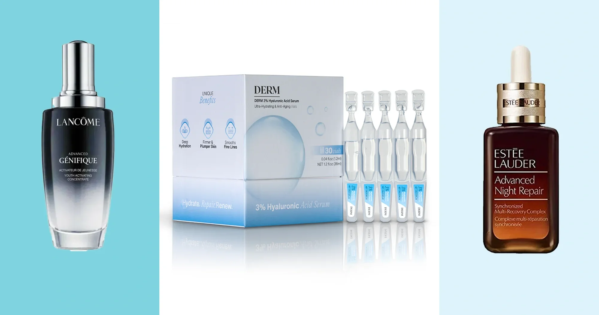 I've tried both of the first two and I have to say that derm with half the cost of lancome gets great results...more hydrated skin wrinkles and fine lines diminished